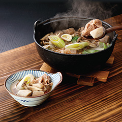 山形を代表する郷土料理、芋煮。内陸部では醤油ベースのスープに里芋のほかに牛肉を入れるのが一般的。材料を入れるだけなのでとても簡単。ホクホクの里芋と山形牛の旨みを存分に味わってください。「日本の極み」TOPへ