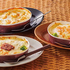 ベシャメルソースに使う小麦粉・牛乳・バター・生クリームは全て北海道産。トッピングには十勝産モッツァレラチーズ。北海道の食材をふんだんに使用したグラタン3種セットです。