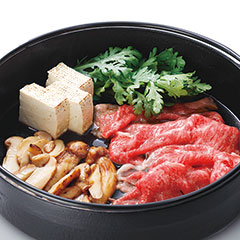 霜降りがほどよく入った米沢牛をすき焼に。煮込むと鍋全体の味を引き立てます。