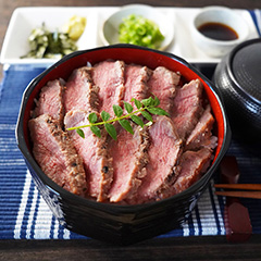 銘柄牛のもつ濃厚な旨みに、食欲をそそられる甘口のタレと〆の出汁がついたひつまぶしのセットです。味噌と塩で味付けされた2種の和牛モモ肉とタレの旨みを楽しんだ後は、出汁をかけお茶漬けにしてお召し上がりください。