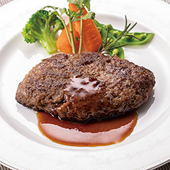 良質な穀物飼料と豊かな自然環境で育てられた、旨みが際立つ山形牛。ほどよい霜降りと甘みのある良質な脂が特徴です。A4ランク以上のロースA3ランク以上のモモ肉を使い、その旨みをギュッと閉じ込めたハンバーグをお届けします。調味料も山形にこだわり、県産のぶどうを使用した赤ワインに、自家製酒粕等の発酵食品を使用したデミグラスソースを作りました。ジューシィで贅沢なハンバーグを、こだわりのデミグラスソースとともにお召しあがりください。「日本の極み」TOPへ