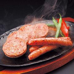 北海道産豚肉を素材に、独自調合のスパイス、肉と相性の良いドイツ岩塩を練り合わせて腸に詰め込み、炭火と北海道産白樺チップで燻煙・乾燥させました。ギョウジャニンニク、チョリソー、プレーンの、コクのある3種類の無塩せきソーセージです。「日本の極み」TOPへ
