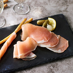 放牧豚の肩ロースやウデを使用し、塩に依存しない旨み、結着剤に頼らない、素材の味わいを十分に味わっていただけるサラミです。薄くスライスしてお召しあがりいただくことで、芳醇で奥行きのある味わいをお楽しみください。