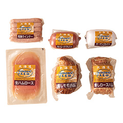 化学合成食品添加物を使用せず、自社の豚骨から煮出したポークエキスと、だしをバランスよく混ぜ合わせた三元豚のハムとソーセージのセットです。「日本の極み」TOPへ