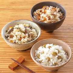 山形県鶴岡市のだだちゃ豆、国産茸、山菜の3種の味わいが楽しめる炊き込みご飯の素です。「日本の極み」TOPへ