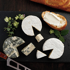 黒松内町産の搾りたて生乳を使用。このカマンベールチーズとブルーチーズは、JAL国際線のファーストクラスの機内食に採用された実績があります。