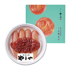〈やまや〉自慢の辛子明太子をじっくりと熟成させ、紀州産南高梅を使った梅餡で仕上げた「うめ明太子」。明太子のまろやかなコクに、梅の酸味やカリカリとした食感が合わさった、さわやかな一品です。