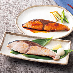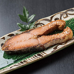 旬の時期である9月に獲れる、北海道オホーツク海産の雄の秋鮭のみに限定し、贅沢な「焼魚」に。うろこの向きに逆らって塩をすり込む逆塩製法により、皮から塩をしみこませ、旨みを引き出しました。「西京焼」は、京都の西京味噌と合わせることで旨みを増幅。電子レンジで温めるだけでお召しあがりいただけます。「日本の極み」TOPへ
