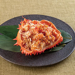 根室で水揚げ後、鮮度の良いまま塩ゆでにしたジューシーな花咲がに。あざやかな赤色で旨みが強く、濃厚なかに味噌も絶品です。