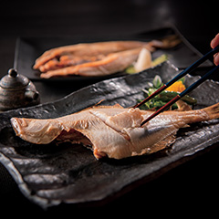 特殊なセロハンで包み込み、軽石で挟み軽石の吸水力を活用して、干しあげた干し魚セットです。身が「ふっくら」と「魚本来の旨さ」を引き出し、うす塩味に仕上げました。冷蔵庫で自然解凍後、中火でじっくり焼く「焼魚」がおすすめ。うすい塩加減なのでフライや煮でも楽しめます。