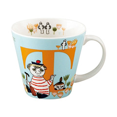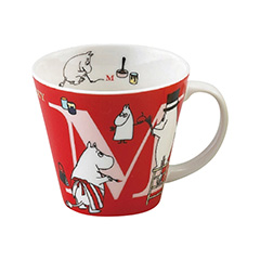 ムーミンの物語はフィンランドの作家であり、画家でもあるトーベ・ヤンソンによってかかれました。1945年に最初の小説「小さなトロールと大きな洪水」が出版され、現在では絵本、コミック、アニメ等様々な形で世界中の人々に愛されています。個性的で楽しいムーミン一家と仲間たちが繰り広げる物語は、ファンタジックな北欧の香りの中にユーモアな哲学的なスパイスが効いた、不思議な魅力にあふれています。ムーミンの仲間たちが勢ぞろいしたイニシャル入りのマグカップ。A・H・J・K・M・N・R・S・T・Yそれぞれ色も柄も違うので選ぶのが楽しくなります。