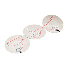 永遠の恋人たちを結ぶ赤い糸。「ラブイズ」は、ミッキーマウスとミニーマウスの左手の薬指を結ぶ赤い糸をテーマにしたテーブルウェアです。