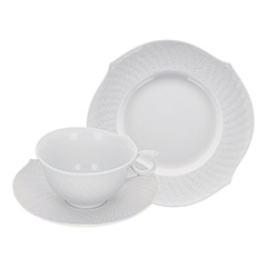 清冽な印象のマイセン「波の戯れ」シリーズのカップ&ソーサ―。さざ波のようなレリーフがモダンなフォームに映え、「用の美」の完全な一致を感じさせるデザインです。