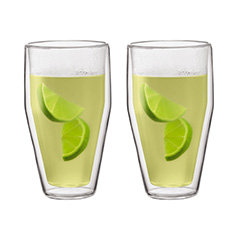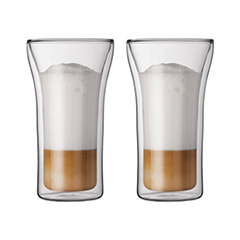 熟練された職人による吹きガラス製法で、ひとつずつ作られたボダム ダブルウォールグラスは、耐熱ガラスの二重構造で、温かい飲みものは温かく、冷たい飲みものは冷たいまま、飲みもののおいしさを持続させる、保温性、保冷性に優れたグラスです。また、冷たい飲みものを入れても結露しにくく、温かい飲みものを入れても熱くて持てないということがありません。飲みものが宙に浮いて見えるユニークなデザインも特徴でドリンクのグラスとしてもお料理の器としても、多種多様にご使用いただくことができます。