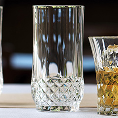 2粒の煌くクリスタルストーンがデザインを引き立てる、「プロミシス」シリーズのタンブラー。ソフトドリンクからお酒まで幅広くお使いいただけます。