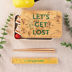 木の温もりがやさしい印象のランチボックスと箸は、線画のイラストが大人かわいいグッドデザイン!