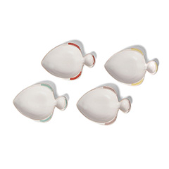 まるで泳ぎ出しそうなユニークな魚の形!フランスの伝統陶器「ファイアンス焼」を思わせる、素朴ながらも洗練されたデザイン。取り皿、醤油皿、薬味皿として、食卓に遊び心をプラスします。 異なる4種の魚たちが集う姿は、見ているだけで心躍る楽しさ。 鮮やかな料理も、シンプルな一品も、グッと魅力的に引き立てる、センスが光る小皿セットです。