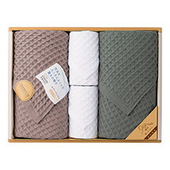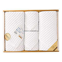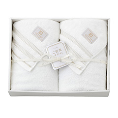 軽く絞りやすく、乾きやすい浴用タオルと通常より細い糸を使用してボリューム感がありながらも繊細でふんわりやさしい肌触りのバスタオル。ウェットユースからドライユースまでさまざまな場面での使いやすさを追求し、極みのタオルが誕生しました。タオルの原点である「使いやすさ」を考え、タオルを使う、ひと時の幸せと笑顔を祈って作られたタオルギフトです。