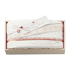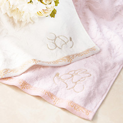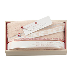 やわらかな濃淡で繊細に織り出された、優美なさくら紋様。甘撚り糸を使うことで、しっとりやわらかな極上の風合いと高い吸水性をかなえた、世界に誇る「今治謹製」です。