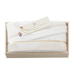 人と人を結ぶご縁の糸を、紡いで織った、ていねい仕上げ。手にした時の軽やかさ、ふんわり感で、違いがわかるタオルです。ほっとするような肌ざわりと、こころを込めて作られた高い品質。いいものをいつまでも使ってほしいから…。そんな想いを込めて、美しい木箱にやさしくそっと詰めました。その上質感は、どんな用途で贈っていただいてもきっと喜ばれる事でしょう。認定番号:第2012-464号