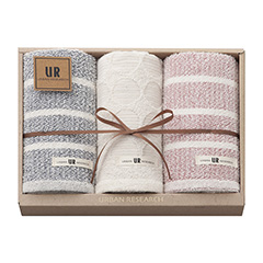 〈URBAN RESEARCHI〉は、フレキシブルに今の空気をモノやカルチャーに乗せて伝える“SPECIALITY SHOP”です。「DESIGN YOUR LIFE STYLE」をコンセプトに様々な都市をリサーチし、カジュアルテイストをベースに世界中からデイリーウエアやドレスに加え、コスメや植物といったライフスタイル雑貨までをセレクトしています。カジュアルな場面でも、ビジネスシーンでも大人らしい雰囲気を演出してくれるアーバンリサーチのタオル。肌にあたるパイル部分にはオーガニックコットンを100%使用しており、デザイン性だけでなく使い心地にもこだわったギフトセットです。