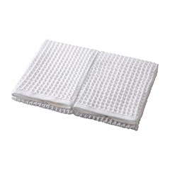 まるで空気を纏ったようなふわふわな新感覚。先進の技術と繊細な感性によって生み出された〈日本の極み〉をお届けします。糸の中に大きな隙間がある特別な中空糸だけで織り上げたワッフルタオル。さらっとした感触がある一方で適度な弾力があるため肌に押し当てると面積を増し、水をよく吸ってくれます。