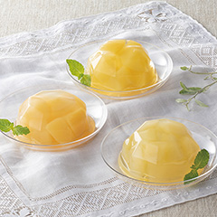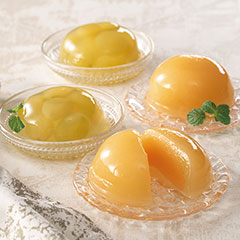 四万十川の清流水を使用し、フルーツ王国おかやまで収穫したフルーツをゼリーにしました。豊潤な香りの清水白桃ゼリーは半割の果肉入り、さわやかな香りのシャインマスカットゼリーは果肉たっぷりと、2つの味わいをお届けします。「日本の極み」TOPへ