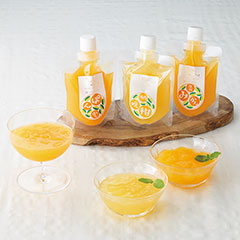 愛媛県宇和島産果実の果汁をたっぷり使用したゼリー。果実にストローをさして果汁を飲んでいるようなやわらかゼリーは、お子さまやお年寄りにも食べやすく、スプーンも不要です。「日本の極み」TOPへ