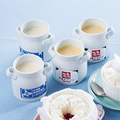 砂川市に広大な敷地を誇る〈岩瀬牧場〉の直営工場がお届けするスイーツセット。牛乳本来の味わいを生かした「プリン」はミルクとカスタードの2種類が楽しめます。