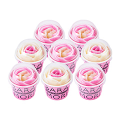 秋田県の道路沿いで売り子さんがヘラでアイスクリームを盛って販売している、ババヘラアイス。そんな秋田の夏の風物詩、ババヘラアイスをカップアイスで楽しめるセットです。バラの花が咲いたように可愛らしく盛り付けられたババヘラアイスはひとつひとつ手作りで作られています。ピンクの部分はいちご味、黄色はバナナ味になっていて、シャーベットのような食感はどこか懐かしい味わいです。