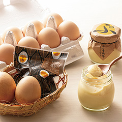 昆布酵素や乳酸菌を配合した良質な飼料を食べて育った健康なにわとりが産んだ「下川六〇酵素卵」と、下川町の温泉水で茹であげ、同町産のウッドチップで燻製した「燻製たまご」、濃厚な「えっぐぷりん」のセット。えっぐぷりんが北のハイグレード食品2021に認定されました。