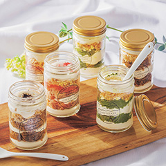 摘みたて素材の美しさや美味しさを一層高めるスイーツや料理を提供する〈ICONIC STAGE〉。りんごを長時間煮詰め、甘みと酸味にこだわった「アップルシナモン」、パイナップルの独特の甘みに香り高いカルダモンを合わせた「パイナップルカルダモン」、ココナッツ風味の生地にキウイの酸味がぎゅっと閉じ込められた「キウイ&キウイ」をセットでお届けします。可愛らしいキューブ型のケーキは、贈りものにもぴったりです。