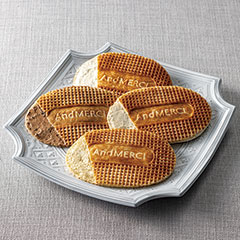 柔らかくてもっちもち。「ゴーフルらしくない」と思われたかもしれませんが、実はこれこそが本場フランドルのゴーフルです。フランドルはベルギーとフランス北部にまたがる地方で、作り手であるアンドリエス・ドニスさんも北フランス出身。2019年、山形県大石田町にフランス菓子とチョコレートの専門店 「AndMERCI」を開業し、山形ならではの素材を生かして、日本人の好みに合わせた甘さ控えめのスイーツを丁寧に作り続けています。このゴーフルはアンドリエスさんが「日本ではなかなか手に入らないので、自分で作りました」 という「ふるさとの味」。生地をしっかり発酵させ、焼き時間を秒単位で調整して仕上げています。「日本の極み」TOPへ