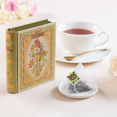 歴史あるスリランカの紅茶ブランド「バシラーティー」。かわいいデザインのミニブック缶はグリーンティーベースのフレーバーティーをお楽しみいただいた後も小物入れなどにご利用いただけます。