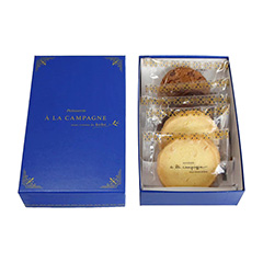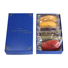 「a la campagne」の焼き印が目を引く、定番のスフレチーズケーキ。ふんわり軽やかな口当たりに濃厚なチーズを合わせた新感覚の味わいで、しっとりとした食感とまろやかな風味をお楽しみいただけます。ティータイムはもちろん、ワインとの相性も抜群。プロヴァンス柄のかわいらしいパッケージでお届けします。