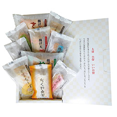 ふんわりとした食感にそれぞれの風味が調和し、ついつい手を伸ばしたくなるかまぼこ・ちくわのバラエティセットです。おやつやおつまみにぴったりの一品です。