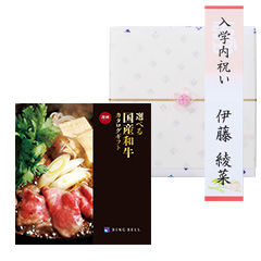 〈松阪牛〉〈米沢牛〉をはじめとするリンベルお奨めの名だたる銘柄牛を、「すきやき」「しゃぶしゃぶ」「焼肉」「ステーキ」といった食べ方別に掲載した国産和牛専用カタログギフト。※この商品は入学内祝い専用の商品です。ご購入手続きの際は、以下の項目をご選択・ご確認ください。〈Step1 お客さま情報入力〉・ご用途は「その他内祝い」をお選びください。〈Step2 ギフト仕様設定〉・お好きな包装紙をお選びいただけます。・のし上(表書き)、のし下(お名前)のご指定は短冊のしに反映いたします。掛け紙には印字いたしません。・のし上は「内祝い(蝶結び)」をお選びいただくか、「手入力」を選択後、「入学内祝い」とご入力いただくのがおすすめです。※のしのご指定がない場合、「内祝」の表書き、お名前は空欄でのお届けとなります。ギフトサロンのスタッフのおすすめ それぞれのブランド牛が料理用途別で選べるので、何度もらっても嬉しいと好評をいただいています。ハンバーグやビーフカレーなど、精肉以外の商品も充実しています。 カタログギフトで贈るメリットは、受け取った人が欲しいタイミングで頼めること。肉本来の美味しさをキープできるよう、配送にもこだわって冷蔵便でお届けいたします。 企業様のキャンペーン賞品として使っていただく機会が多い人気商品です。シズル感のある画像が魅力的ですよね。 カードタイプはカジュアルに贈りやすいということで、ネット注文が苦にならない若い世代のお客様は即決される方も多いです。どんな用途にもお使いいただけます。
