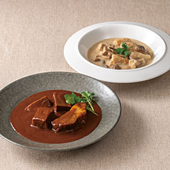とちぎ和牛『匠』を使用した牛肉の旨み溢れるムッシュー特製ビーフシチューと旨みエキスに頼らずじっくり素材の味を引き出したムッシュー自慢の煮込み料理の詰合せです。「日本の極み」TOPへ