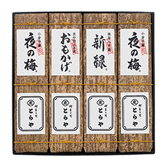 日本を代表する和菓子である<とらや>の羊羹は、良質な小豆、砂糖、寒天へのこだわりから生まれる上品な味わいで、多くの人々から愛され続けています。江戸時代から<とらや>の御用記録に残る竹包みの羊羹4種を詰め合せました。