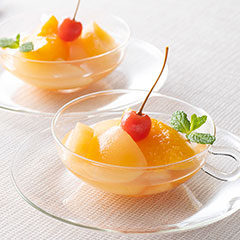 一番おいしい旬の時期に収穫したりんご、ラ・フランス、白桃をゼリーに閉じ込めました。国産フルーツを使用し、大ぶりにカットしたフルーツを、もちっとしたゼリーに包みました。まるでフルーツを食べているかのような果実感、よく冷やしてからお召しあがりください。「日本の極み」TOPへ