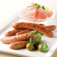 しっとりとした生ハムとこだわりの製法で作りあげたウインナーの詰合せです。