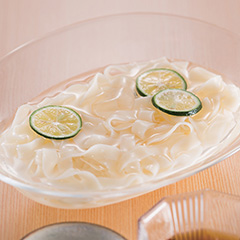 長年培われた伝統製法に加え、現代の特殊製法を取り入れる事により生まれたもちもちぷるぷるの麺。お好みのつゆと組み合わせてのどごしの良さをお楽しみください。