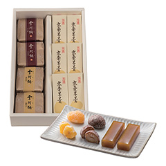 創業以来約670年、〈塩瀬総本家〉は日本人とお菓子のふれあいを見つめてまいりました。江戸開府とともに、京都より江戸に移り、明治初年には宮内省御用の栄を賜りました。伝統に裏打ちされた味を、熟練の技と心で今に伝えます。栗を模した栗あん入り焼菓子「山みやげ」、金柑がころんと入った「葛きり」、甘さ上品な「栗ぜんざい」の詰合せ。