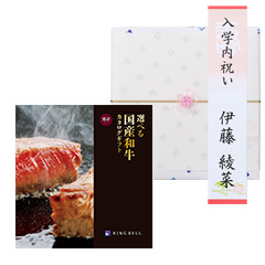 〈松阪牛〉〈米沢牛〉をはじめとするリンベルお奨めの名だたる銘柄牛を、「すきやき」「しゃぶしゃぶ」「焼肉」「ステーキ」といった食べ方別に掲載した国産和牛専用カタログギフト。※この商品は入学内祝い専用の商品です。ご購入手続きの際は、以下の項目をご選択・ご確認ください。〈Step1 お客さま情報入力〉・ご用途は「その他内祝い」をお選びください。〈Step2 ギフト仕様設定〉・お好きな包装紙をお選びいただけます。・のし上(表書き)、のし下(お名前)のご指定は短冊のしに反映いたします。掛け紙には印字いたしません。・のし上は「内祝い(蝶結び)」をお選びいただくか、「手入力」を選択後、「入学内祝い」とご入力いただくのがおすすめです。※のしのご指定がない場合、「内祝」の表書き、お名前は空欄でのお届けとなります。ギフトサロンのスタッフのおすすめ それぞれのブランド牛が料理用途別で選べるので、何度もらっても嬉しいと好評をいただいています。ハンバーグやビーフカレーなど、精肉以外の商品も充実しています。 カタログギフトで贈るメリットは、受け取った人が欲しいタイミングで頼めること。肉本来の美味しさをキープできるよう、配送にもこだわって冷蔵便でお届けいたします。 企業様のキャンペーン賞品として使っていただく機会が多い人気商品です。シズル感のある画像が魅力的ですよね。 カードタイプはカジュアルに贈りやすいということで、ネット注文が苦にならない若い世代のお客様は即決される方も多いです。どんな用途にもお使いいただけます。