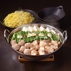 旭川市の居酒屋〈しろふくろう〉の名物は「もつ鍋」。もつは地元の牛ホルモンを丁寧に下処理し、臭みなくプリプリな食感に。道産鶏肉の鶏つくねと旭川ラーメン付きで、2人前ずつの小分けで便利です。北海道の食の英知がひとつの鍋で楽しめます。