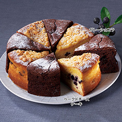 ベースのクッキー生地に、セミドライブルーベリーがたっぷり入ったリッチな味わいの「ベークドチーズケーキ」とチョコレート生地にブルーベリージャムを練りこんだ、ガトーショコラのセットです。2種類の違った味わいを一度に楽しめ、個包装されて届くので手土産としても重宝します。