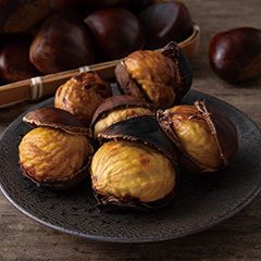 もっとたくさん栗を食べたいけれど、実にはりついている渋皮をむくのが大変。そんな毎年のひと苦労を解決してくれるのが「ぽろたん」です。加熱すると、外側のかたい鬼皮とともに、渋皮もぽろっと簡単にむけるのが、ぽろたんの特徴。大粒で甘みも香りもたっぷり。栗本来のおいしさをたっぷり味わえます。ニホングリの新品種として2006年に誕生したぽろたんの栽培に、岐阜県の東美濃地方は当初から力を入れてきました。「栗きんとんの里」として知られる地域だけに、栗の栽培経験が豊富な農家が粒ぞろい。高い剪定技術と徹底した品質管理が必要なぽろたんの一大産地として、名を馳せています。おいしさの秘密は1か月以上に及ぶ低温貯蔵。冷蔵庫でじっくり寝かせることででんぷん質が糖に変わり、深い甘みが生まれます。9月に収穫してすぐに貯蔵し、出荷は10月下旬から11月中旬まで。ごく限られた期間、限られた個数だけの旬の味を、ご堪能ください。「日本の極み」TOPへ