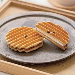 選りすぐりの素材と職人のこだわりによって生み出された「プレミアム千寿せんべい」。食感のアクセントとしてザラメを生地に練り込み、よりリッチな味わいに仕上げました。