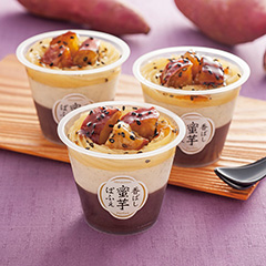 甘くねっとりした「紅はるか」の焼き芋を使った、芋好きにはたまらないスウィーツ。紅はるかの角切りとペーストの下には、滑らかな芋プリン、そして上品な甘さの餡の3層仕立て。みたらしソースが芋の香ばしい風味をさらに引き立てます。