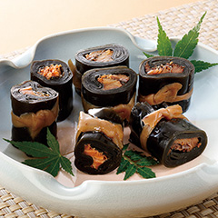 北海道産昆布を使用し、丁寧に巻きあげた昆布巻を昆布と身の奥まで味が染みこむよう、じっくり煮込み仕上げました。